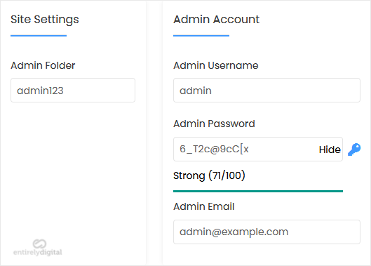 - Admin Folder: Enter the name of your admin folder, such as admin123.
