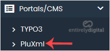 4. On the left side, locate the Portal/CMS category. Click on it and then on the PluXml link that appears.